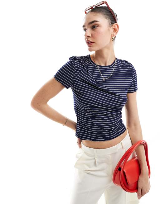 ASOS DESIGN twist front t-shirt in navy stripe