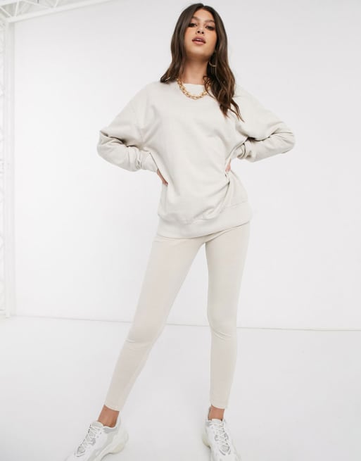 ASOS DESIGN two-piece oversized sweatshirt and legging in stone