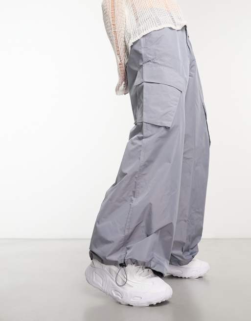 ASOS DESIGN ultra wide parachute cargo pants in charcoal