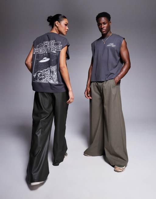 ASOS DESIGN unisex boxy oversized licensed tank top with Foo Fighters prints in gray