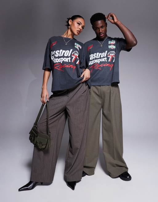 ASOS DESIGN unisex boxy oversized T-shirt with Castrol Racing prints in washed black