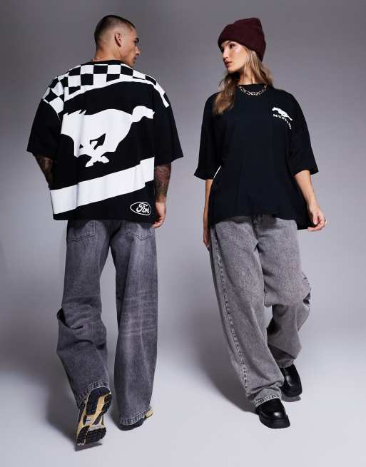 ASOS DESIGN unisex extreme oversized license t-shirt with Ford Mustang prints in black