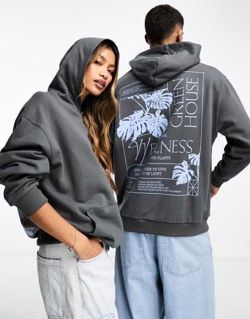 ASOS DESIGN unisex oversized hoodie in gray with floral photographic back print