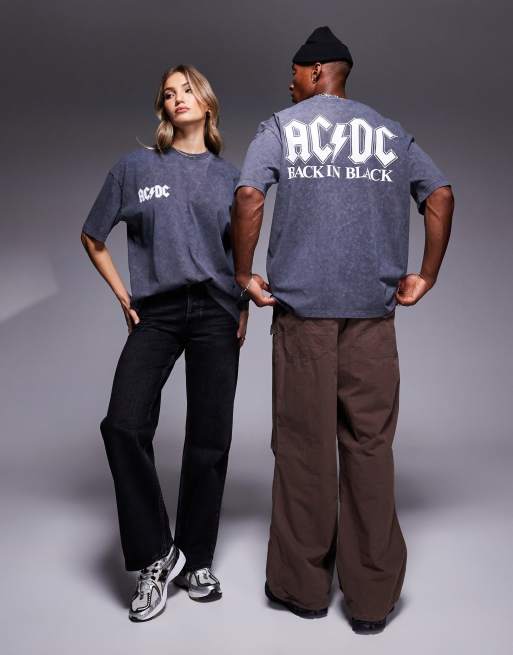 ASOS DESIGN unisex oversized license band t-shirt with AC/DC prints in washed charcoal
