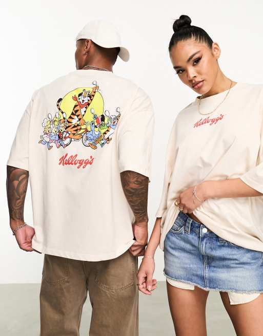 ASOS DESIGN unisex oversized license t-shirt with Kellogg's breakfast print in ecru