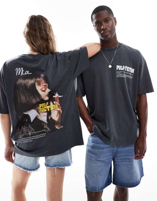 ASOS DESIGN unisex oversized license t-shirt with pulp fiction print in washed black
