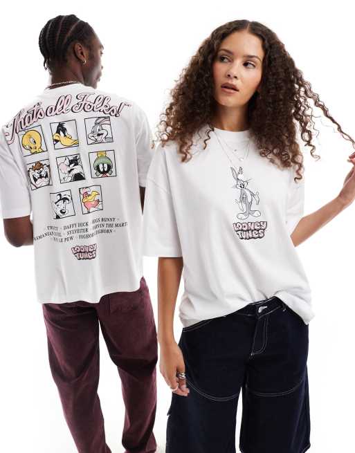 ASOS DESIGN unisex oversized licensed t-shirt with Looney Tunes prints in white