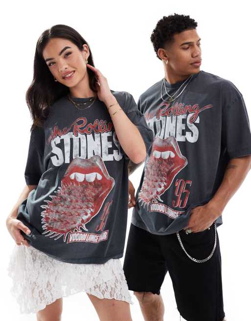 ASOS DESIGN unisex oversized licensed T-shirt with The Rolling Stones tour print in washed black
