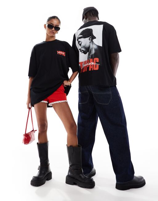 ASOS DESIGN unisex oversized licensed T-shirt with Tupac prints in black