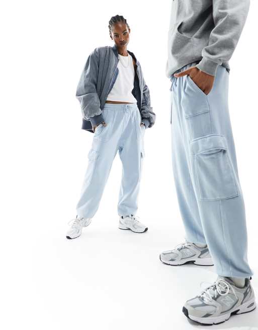 ASOS DESIGN unisex oversized sweatpants with cargo pockets in washed blue