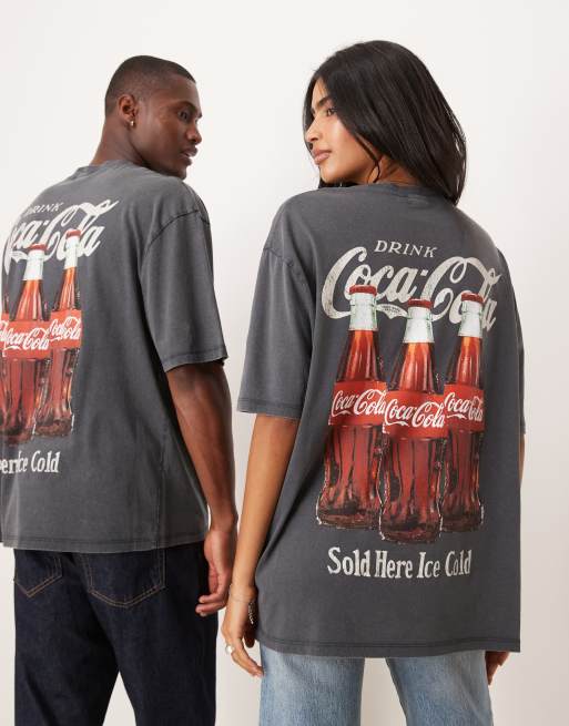 ASOS DESIGN Unisex oversized t-shirt with Coca Cola prints in washed black