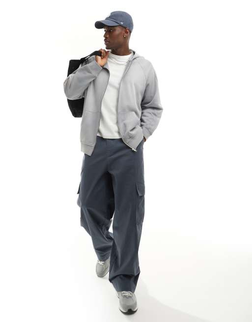 ASOS DESIGN unisex oversized zip up hoodie in washed light blue