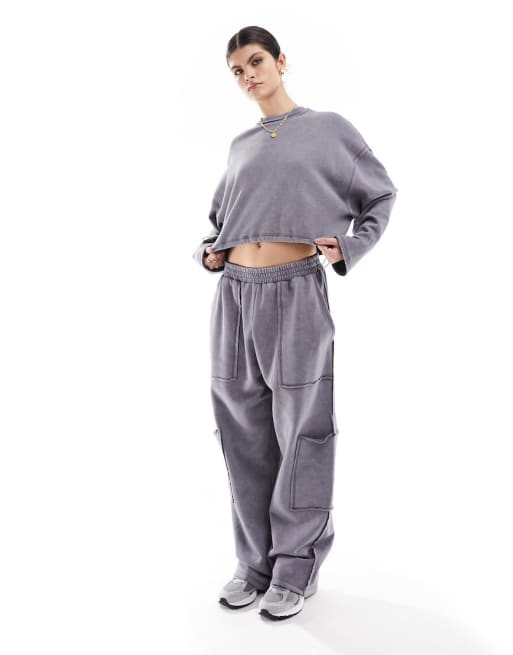 ASOS DESIGN utility sweatshirt and sweatpants set in charcoal wash