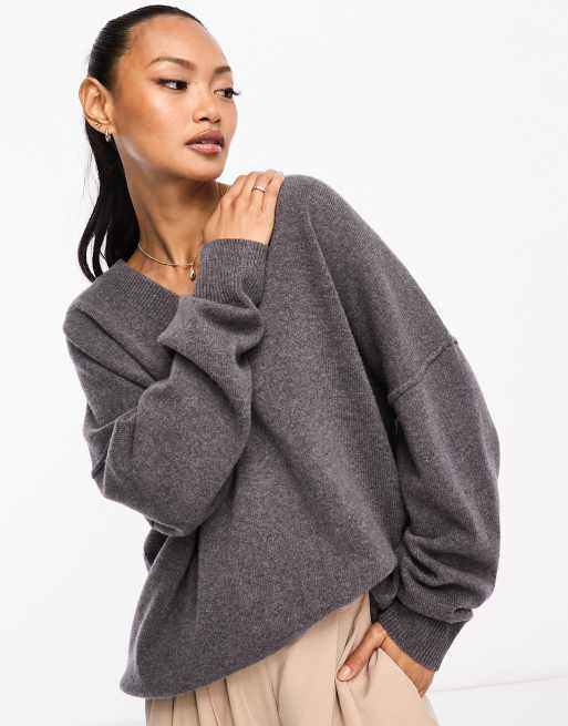 ASOS DESIGN v neck oversized sweater in lambswool blend