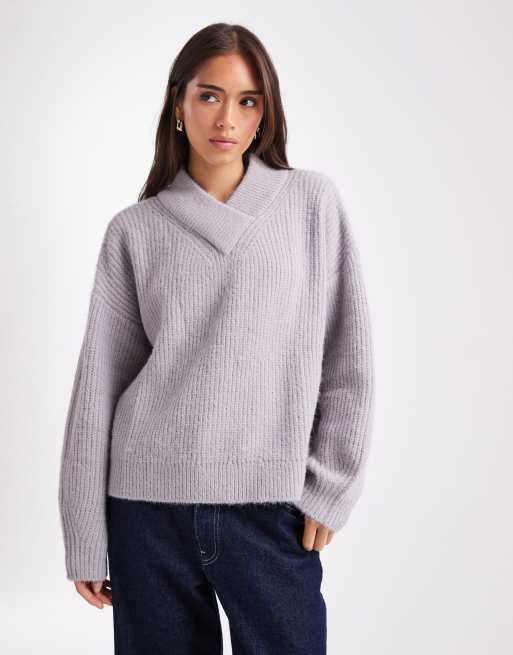 ASOS DESIGN v neck sweater in gray