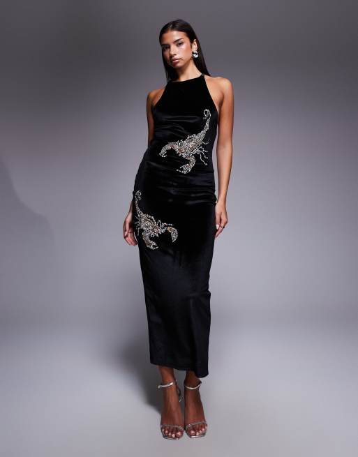 ASOS DESIGN velvet midaxi dress with scorpion embellishments