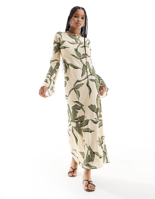 ASOS DESIGN viscose slash neck midi dress with v-back detail in oversized green and cream floral