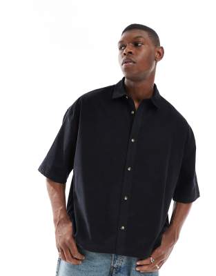 ASOS DESIGN volume oversized washed baby corduroy shirt in black