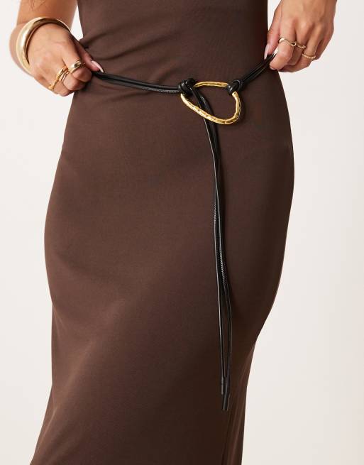 ASOS DESIGN waist and hip belt with hammered loop through design in black
