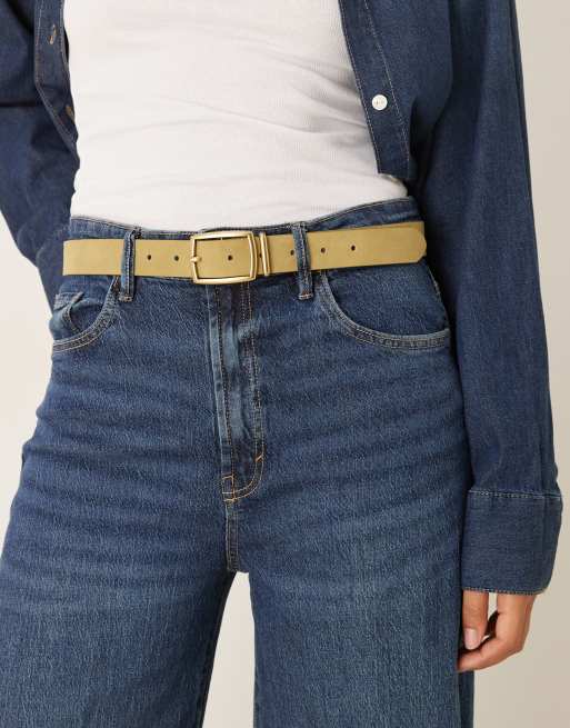 ASOS DESIGN waist and hip faux suede square buckle belt in olive green