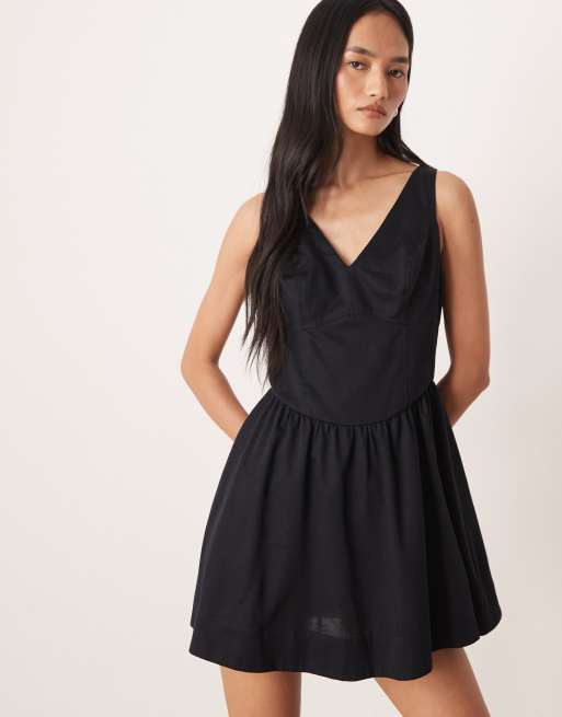 ASOS DESIGN waisted v-neck mini sundress with seaming details in black