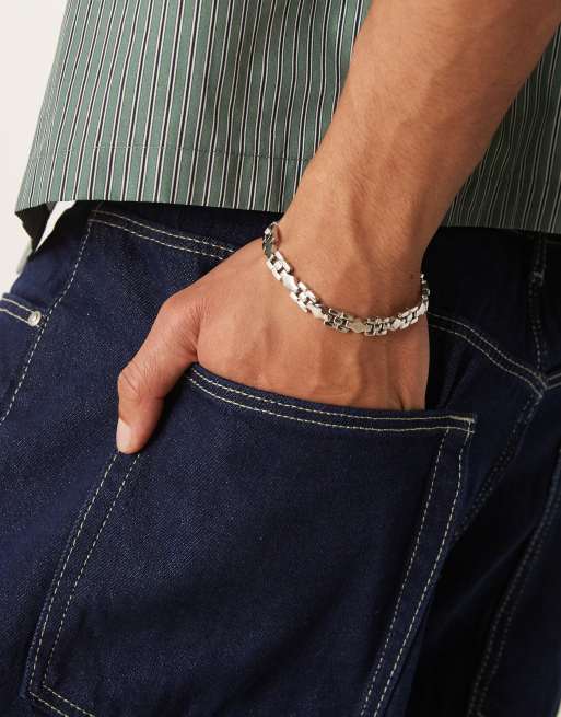 ASOS DESIGN watch chain bracelet in silver tone