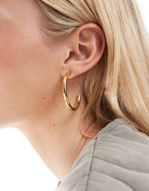 ASOS DESIGN waterproof stainless steel hoop earrings with tube design in gold tone