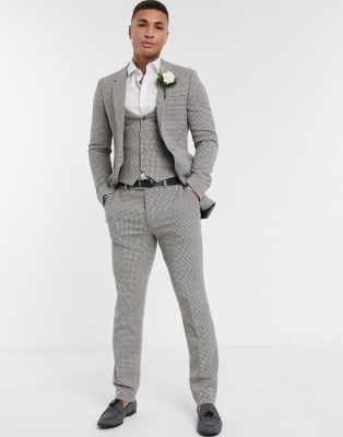 ASOS DESIGN wedding skinny suit in gray wool blend micro houndstooth