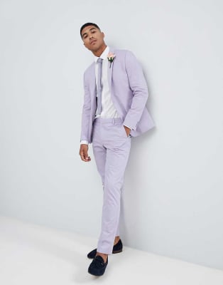 ASOS DESIGN wedding skinny suit in stretch cotton in lilac
