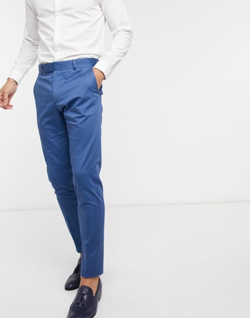 ASOS DESIGN wedding skinny suit pants in blue stretch cotton