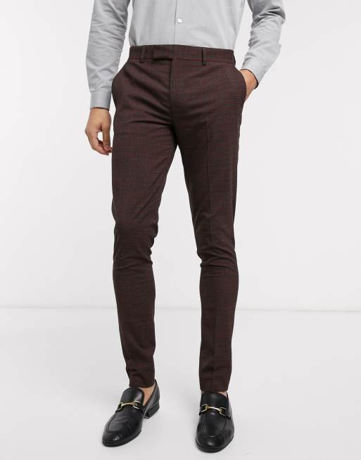 ASOS DESIGN wedding skinny suit pants in mini check in burgundy and gray