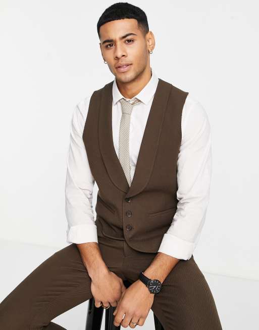 ASOS DESIGN wedding skinny suit vest in brown twill