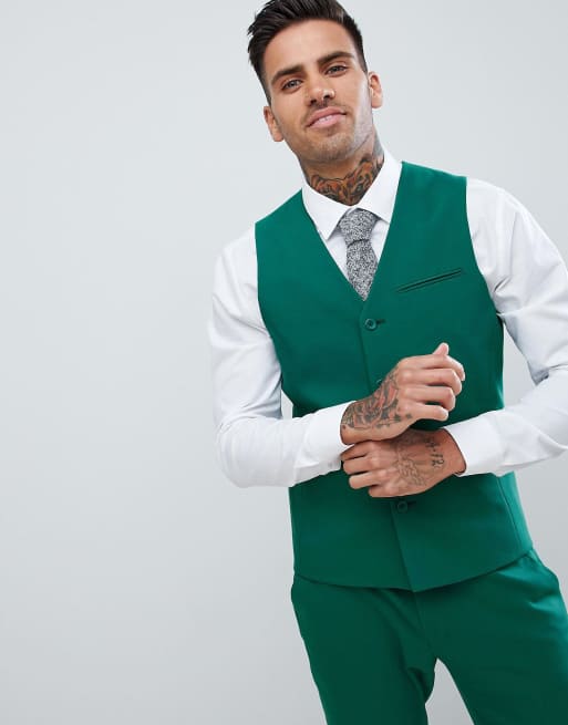 ASOS DESIGN wedding skinny suit vest in forest green