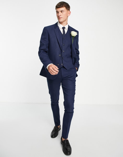 ASOS DESIGN wedding skinny wool blend suit in navy herringbone