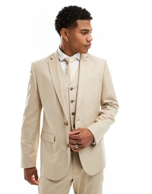 ASOS DESIGN Wedding slim linen mix suit jacket in stone