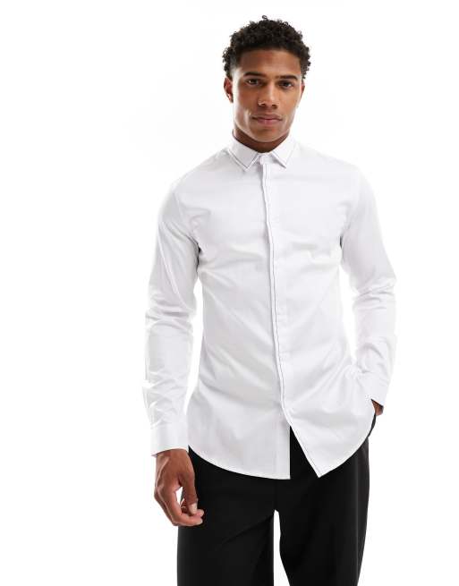 ASOS DESIGN wedding slim shirt with contrast detail in white
