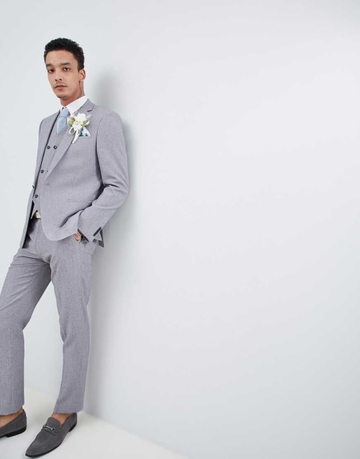 ASOS DESIGN wedding slim suit in mid gray cross hatch with printed lining