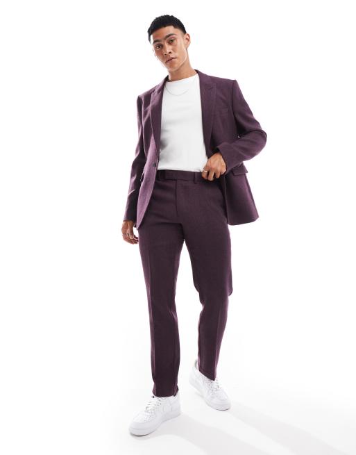 ASOS DESIGN wedding slim suit pants in wool herringbone