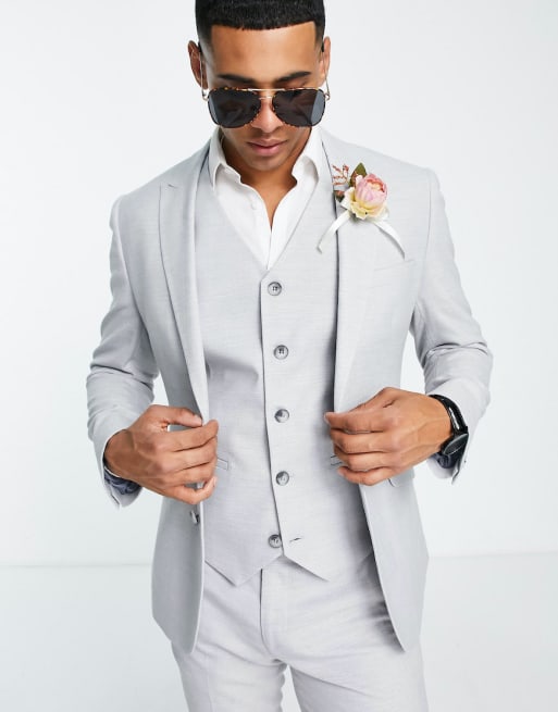 ASOS DESIGN wedding super skinny suit in ice gray micro texture