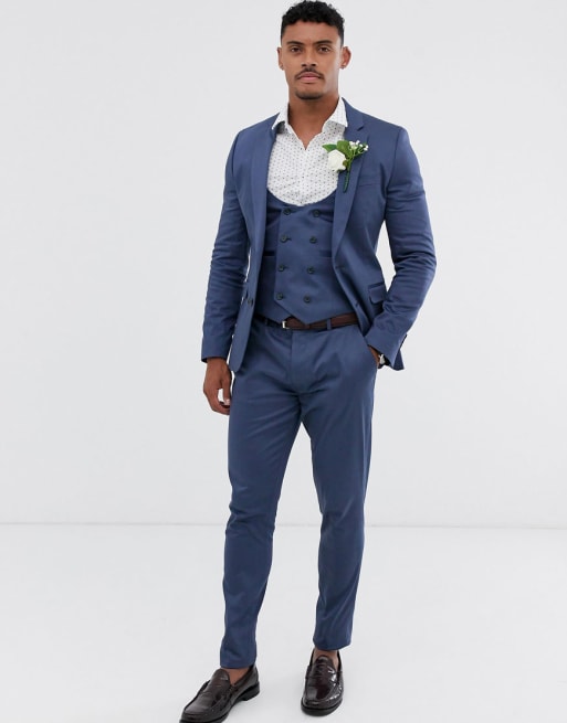 ASOS DESIGN wedding super skinny suit in stretch cotton in indigo blue