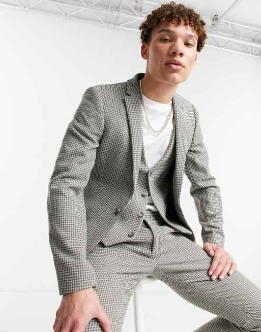 ASOS DESIGN wedding super skinny suit jacket in gray wool blend micro houndstooth