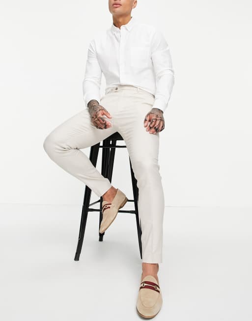 ASOS DESIGN wedding super skinny suit pants in stone linen mix