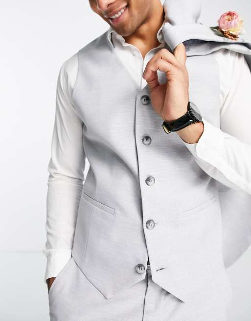ASOS DESIGN wedding super skinny suit vest in ice gray micro texture