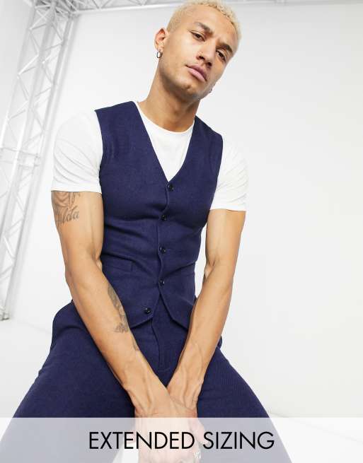 ASOS DESIGN wedding super skinny wool mix suit vest in navy twill