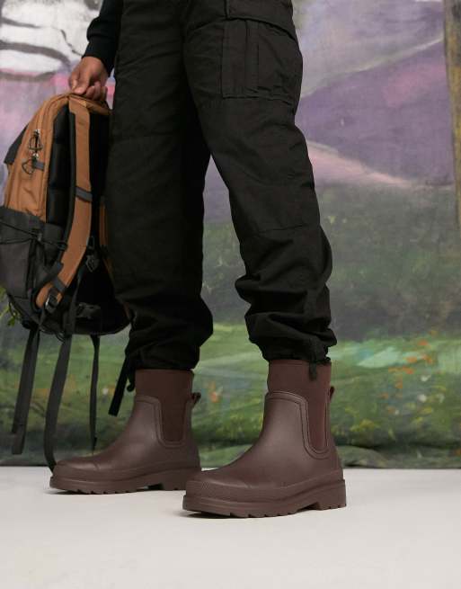 ASOS DESIGN wellington boots with scuba detail in brown