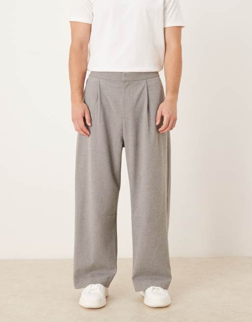 ASOS DESIGN wide barrel leg fit dress pants in light gray flannel look with elastic waist