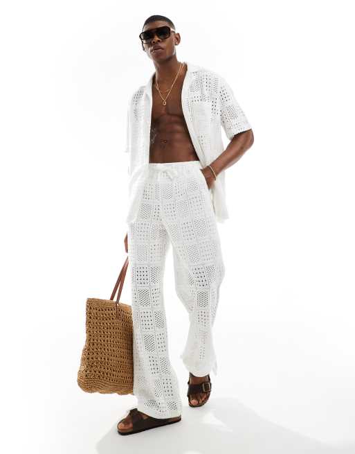 ASOS DESIGN wide crochet pants with elastic waist in white - part of a set