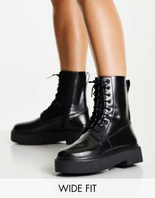 ASOS DESIGN Wide Fit Acolade flat lace up boots in black