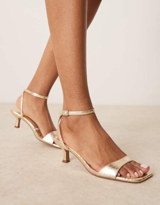 ASOS DESIGN Wide Fit Heart Throb barely there kitten heel sandals in gold
