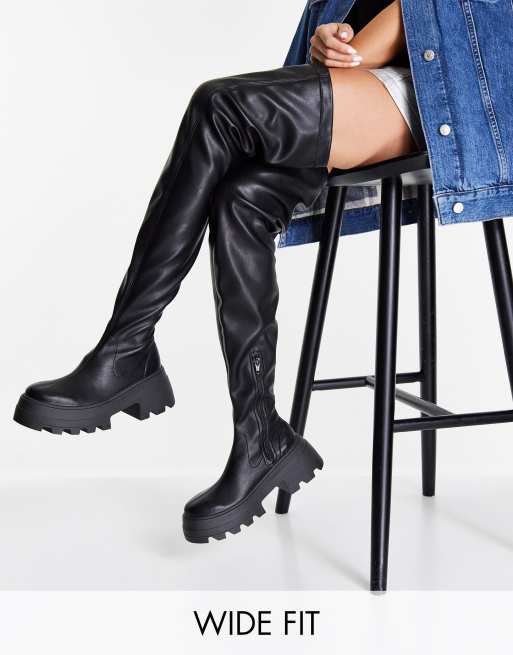 ASOS DESIGN Wide Fit Kaya chunky over the knee boots in black